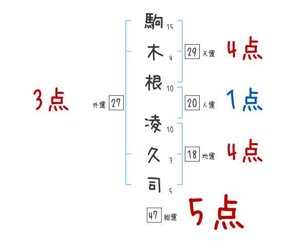 駒木根凌久司さんの画数の鑑定結果