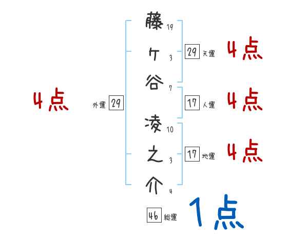藤ヶ谷凌之介さんの画数の鑑定結果