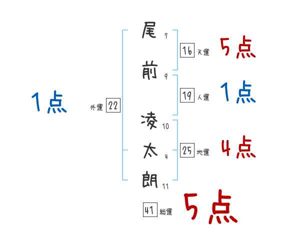 天運![]() | 尾前凌太朗さんの天運は16画の5つ星!人望が厚く大きく発展する。逆転成功が見える。 家系が持つ宿命的な運勢を表します。祖先から受け継いだ苗字ですので自分の力が及びません。家柄を象徴します。 |