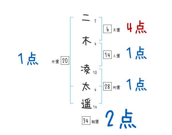 外運![]() | 二木凌太遥さんの外運は20画の1つ星!社交が苦手。人とは違った才能があり波乱万丈な人生かも。 生活面を象徴する運勢です。外部から受ける影響力を表し、結婚運、家庭運や職場、環境への順応性を表します。 |