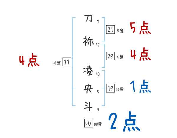 天運![]() | 刀祢凌央斗さんの天運は21画の5つ星!統率力がある。独立し成功する。名誉を手に入れる。 家系が持つ宿命的な運勢を表します。祖先から受け継いだ苗字ですので自分の力が及びません。家柄を象徴します。 |