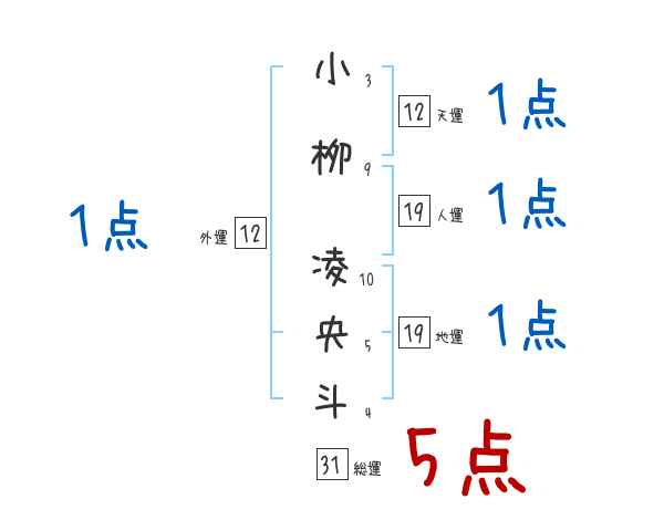 天運![]() | 小栁凌央斗さんの天運は12画の1つ星!簡単な失敗で諦めてしまいやすいかも。着実に行動すると良いでしょう。 家系が持つ宿命的な運勢を表します。祖先から受け継いだ苗字ですので自分の力が及びません。家柄を象徴します。 |
