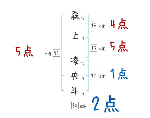 外運![]() | 森上凌央斗さんの外運は21画の5つ星!統率力がある。独立し成功する。名誉を手に入れる。 生活面を象徴する運勢です。外部から受ける影響力を表し、結婚運、家庭運や職場、環境への順応性を表します。 |