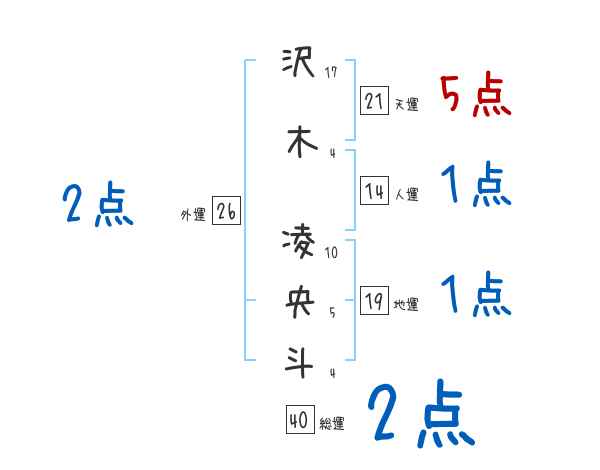 沢木凌央斗さんの画数の鑑定結果