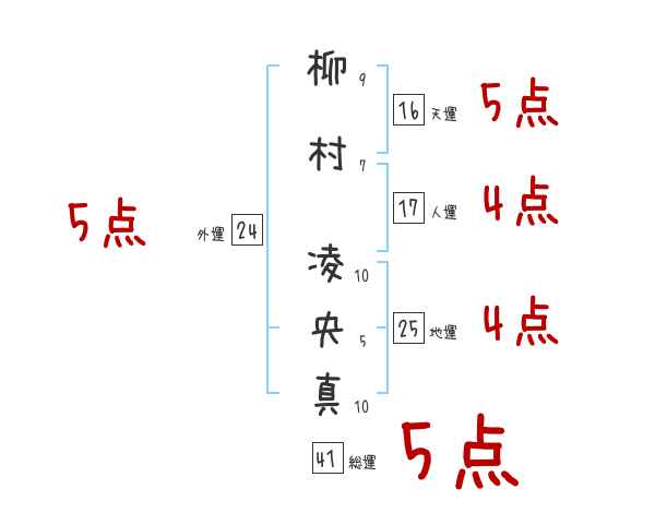 柳村凌央真さんの画数の鑑定結果