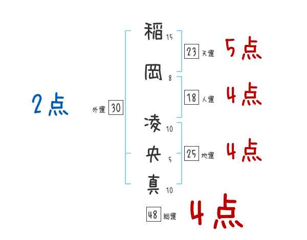 稲岡凌央真さんの画数の鑑定結果