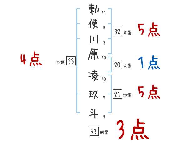 勅使川原凌玖斗さんの画数の鑑定結果