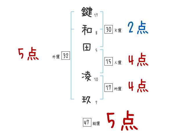 鍵和田凌玖さんの画数の鑑定結果