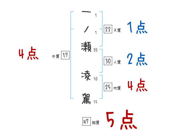 総運![]() | 一ノ瀬凌駕さんの総運は47画の5つ星!実力が開花し発展する円満な人生。財に恵まれる。 あなたの人生を表す1番重要な運勢です。生涯を通じて影響する総合運となり、主に50歳以降の晩年期に影響を及ぼします。 |