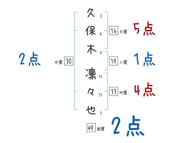外運![]() | 久保木凛々也さんの外運は30画の2つ星!浮き沈みの激しさに注意しましょう。 生活面を象徴する運勢です。外部から受ける影響力を表し、結婚運、家庭運や職場、環境への順応性を表します。 |