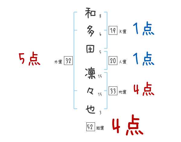 和多田凛々也さんの画数の鑑定結果