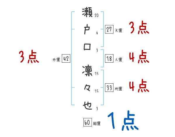 瀬戸口凛々也さんの画数の鑑定結果