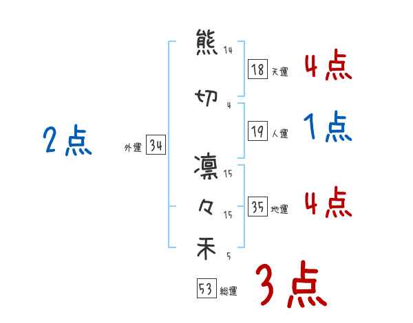 天運![]() | 熊切凛々禾さんの天運は18画の4つ星!情熱的で剛気。忍耐力があり信頼される。 家系が持つ宿命的な運勢を表します。祖先から受け継いだ苗字ですので自分の力が及びません。家柄を象徴します。 |