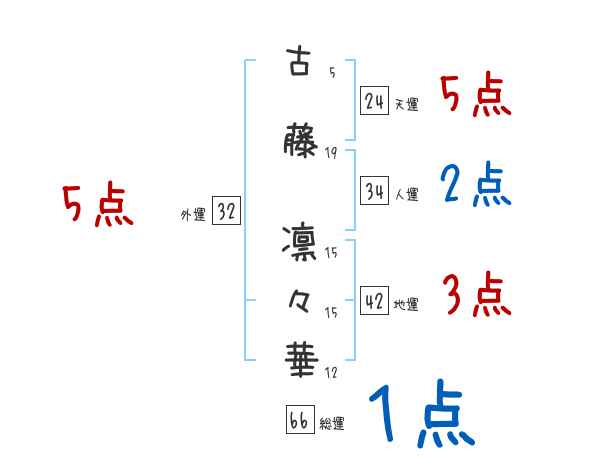 外運![]() | 古藤凛々華さんの外運は32画の5つ星!柔軟性があり成功する。チャンスが多く金運が良い。 生活面を象徴する運勢です。外部から受ける影響力を表し、結婚運、家庭運や職場、環境への順応性を表します。 |