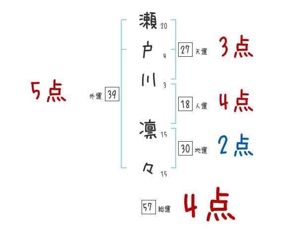 瀬戸川凛々さんの画数の鑑定結果