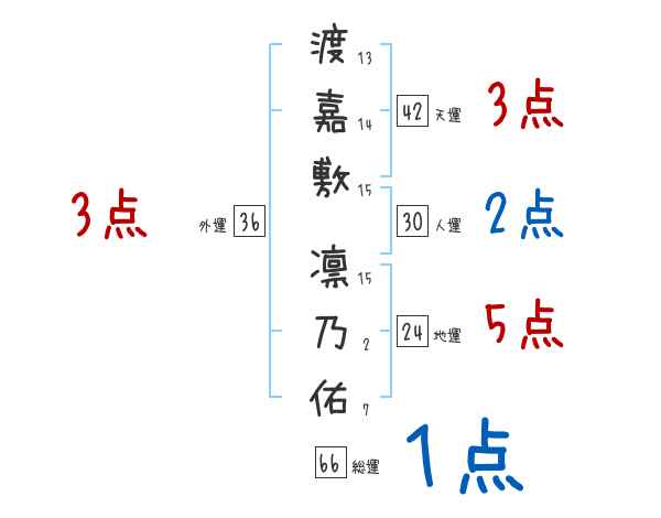 渡嘉敷凛乃佑さんの画数の鑑定結果