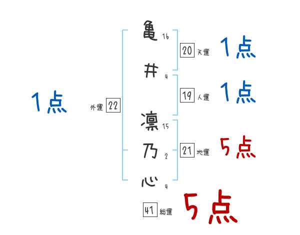 亀井凛乃心さんの画数の鑑定結果