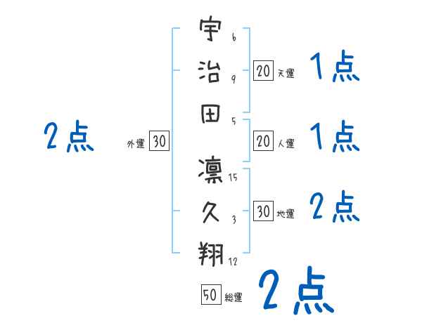 宇治田凛久翔さんの画数の鑑定結果