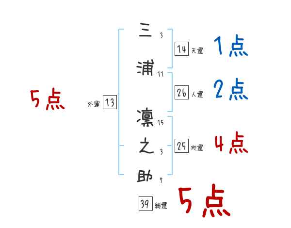 三浦凛之助さんの画数の鑑定結果