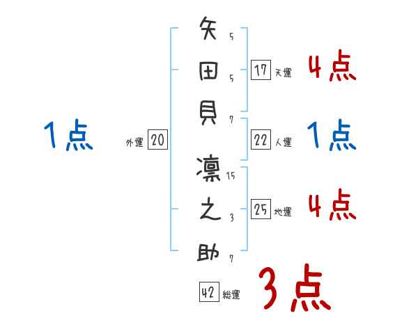 総運![]() | 矢田貝凛之助さんの総運は42画の3つ星!病気に注意。多芸であるが消極的でおとなしい。 あなたの人生を表す1番重要な運勢です。生涯を通じて影響する総合運となり、主に50歳以降の晩年期に影響を及ぼします。 |
