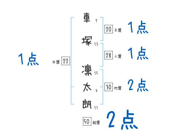 車塚凛太朗さんの画数の鑑定結果