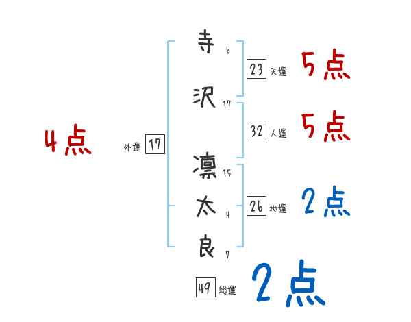 寺沢凛太良さんの画数の鑑定結果