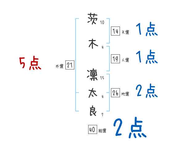 茨木凛太良さんの画数の鑑定結果