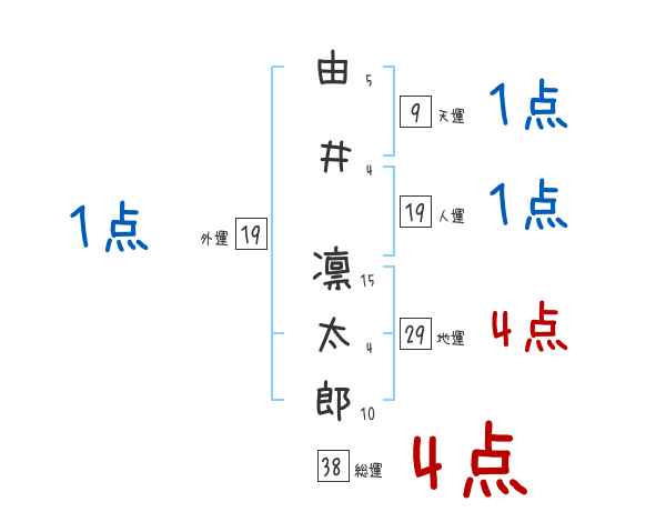 外運![]() | 由井凛太郎さんの外運は19画の1つ星!優れた才能を持ちますが、協調性が足りないことも。周りの人と協力する事を意識しましょう。 生活面を象徴する運勢です。外部から受ける影響力を表し、結婚運、家庭運や職場、環境への順応性を表します。 |