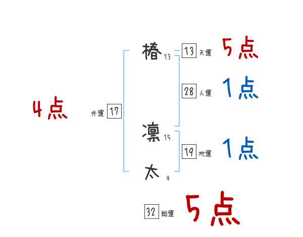 椿凛太さんの画数の鑑定結果