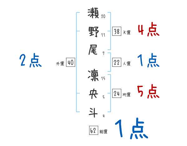瀬野尾凛央斗さんの画数の鑑定結果