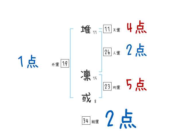 天運![]() | 堆凛或さんの天運は11画の4つ星!着実に富や地位を得る幸運な人生。 家系が持つ宿命的な運勢を表します。祖先から受け継いだ苗字ですので自分の力が及びません。家柄を象徴します。 |