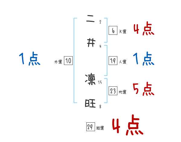 二井凛旺さんの画数の鑑定結果