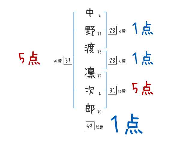 中野渡凛次郎さんの画数の鑑定結果