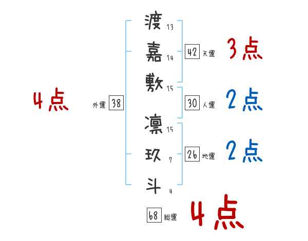 渡嘉敷凛玖斗さんの画数の鑑定結果