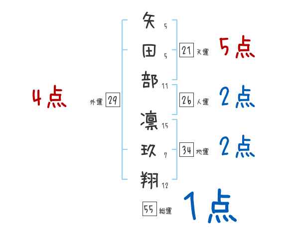 矢田部凛玖翔さんの画数の鑑定結果