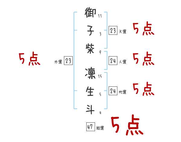 御子柴凛生斗さんの画数の鑑定結果