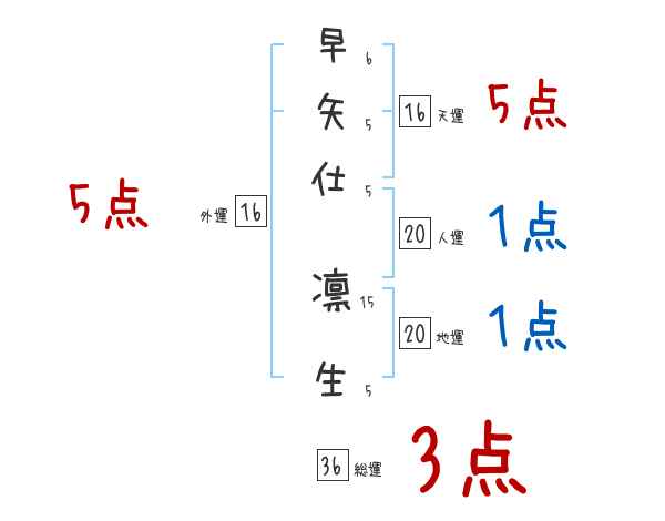 早矢仕凛生さんの画数の鑑定結果