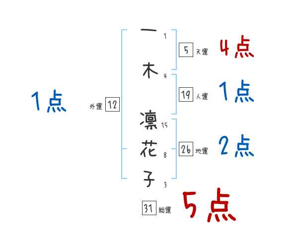 天運![]() | 一木凛花子さんの天運は5画の4つ星!健康で安泰。協調性に優れ、財産に恵まれる。 家系が持つ宿命的な運勢を表します。祖先から受け継いだ苗字ですので自分の力が及びません。家柄を象徴します。 |
