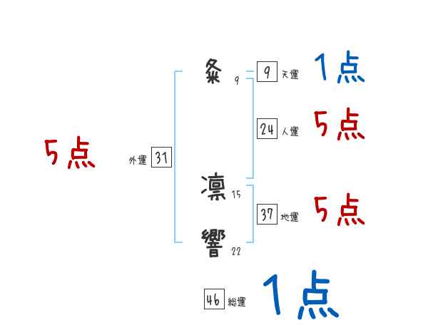 粂凛響さんの画数の鑑定結果