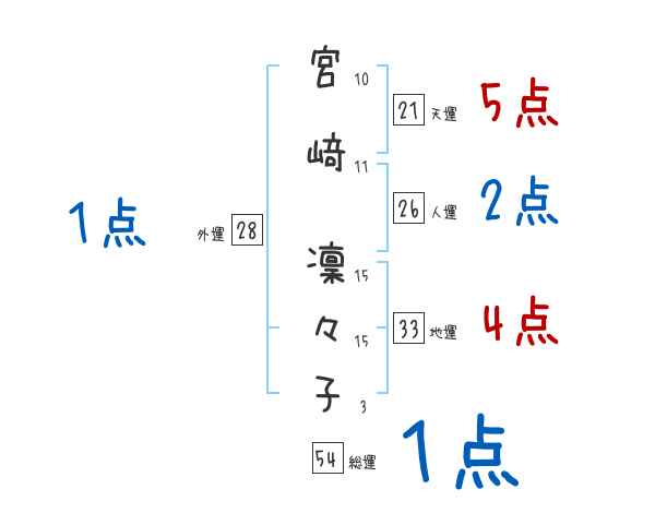 宮﨑凜々子さんの画数の鑑定結果