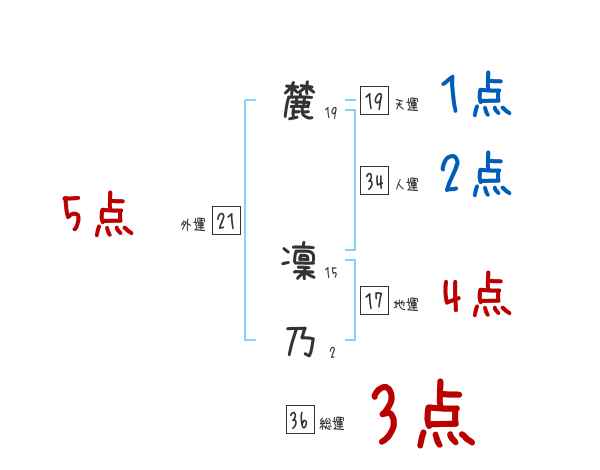 外運![]() | 麓凜乃さんの外運は21画の5つ星!統率力がある。独立し成功する。名誉を手に入れる。 生活面を象徴する運勢です。外部から受ける影響力を表し、結婚運、家庭運や職場、環境への順応性を表します。 |