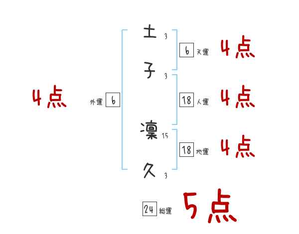 土子凜久さんの画数の鑑定結果