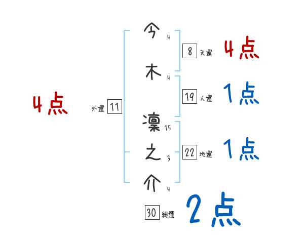 今木凜之介さんの画数の鑑定結果
