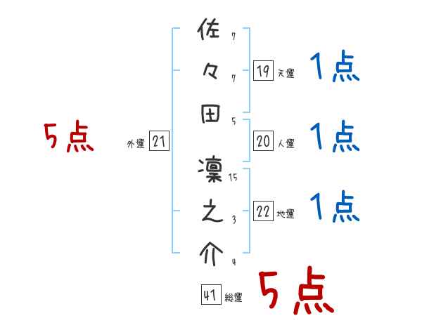 佐々田凜之介さんの画数の鑑定結果