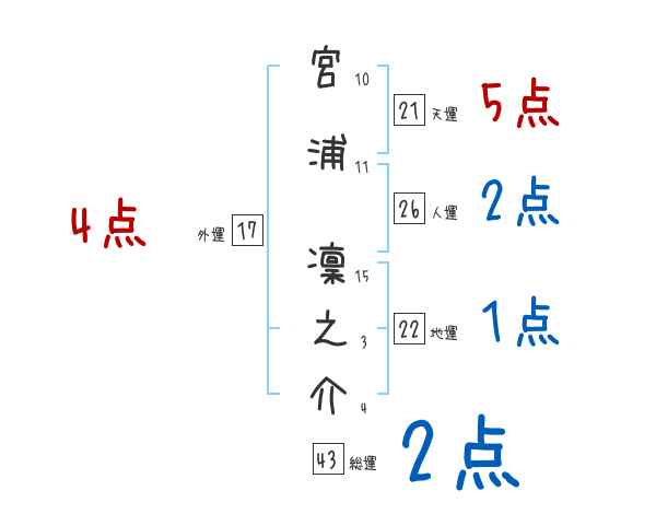宮浦凜之介さんの画数の鑑定結果