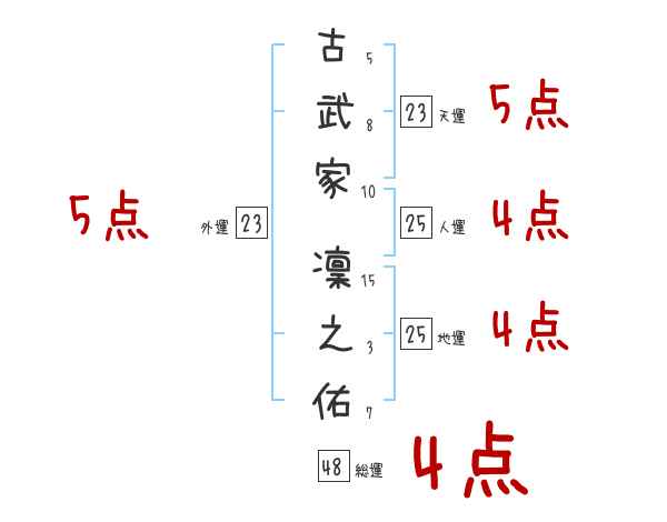 古武家凜之佑さんの画数の鑑定結果