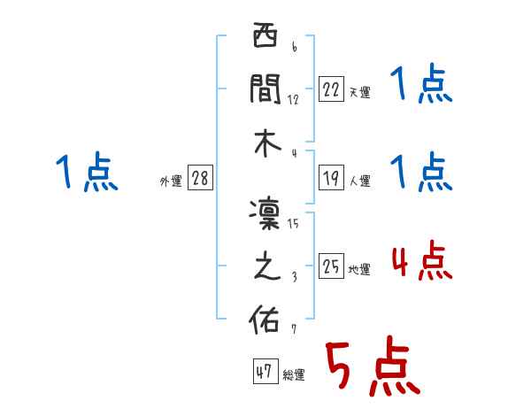 外運![]() | 西間木凜之佑さんの外運は28画の1つ星!家庭環境に注意。スポーツで活躍できる能力があるかも。 生活面を象徴する運勢です。外部から受ける影響力を表し、結婚運、家庭運や職場、環境への順応性を表します。 |