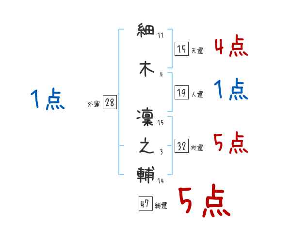 天運![]() | 細木凜之輔さんの天運は15画の4つ星!人徳があり出世する。順調に物事を進め円満な人生。 家系が持つ宿命的な運勢を表します。祖先から受け継いだ苗字ですので自分の力が及びません。家柄を象徴します。 |