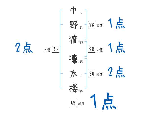 中野渡凜太楼さんの画数の鑑定結果