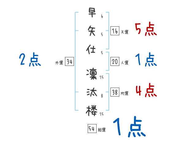 早矢仕凜汰楼さんの画数の鑑定結果